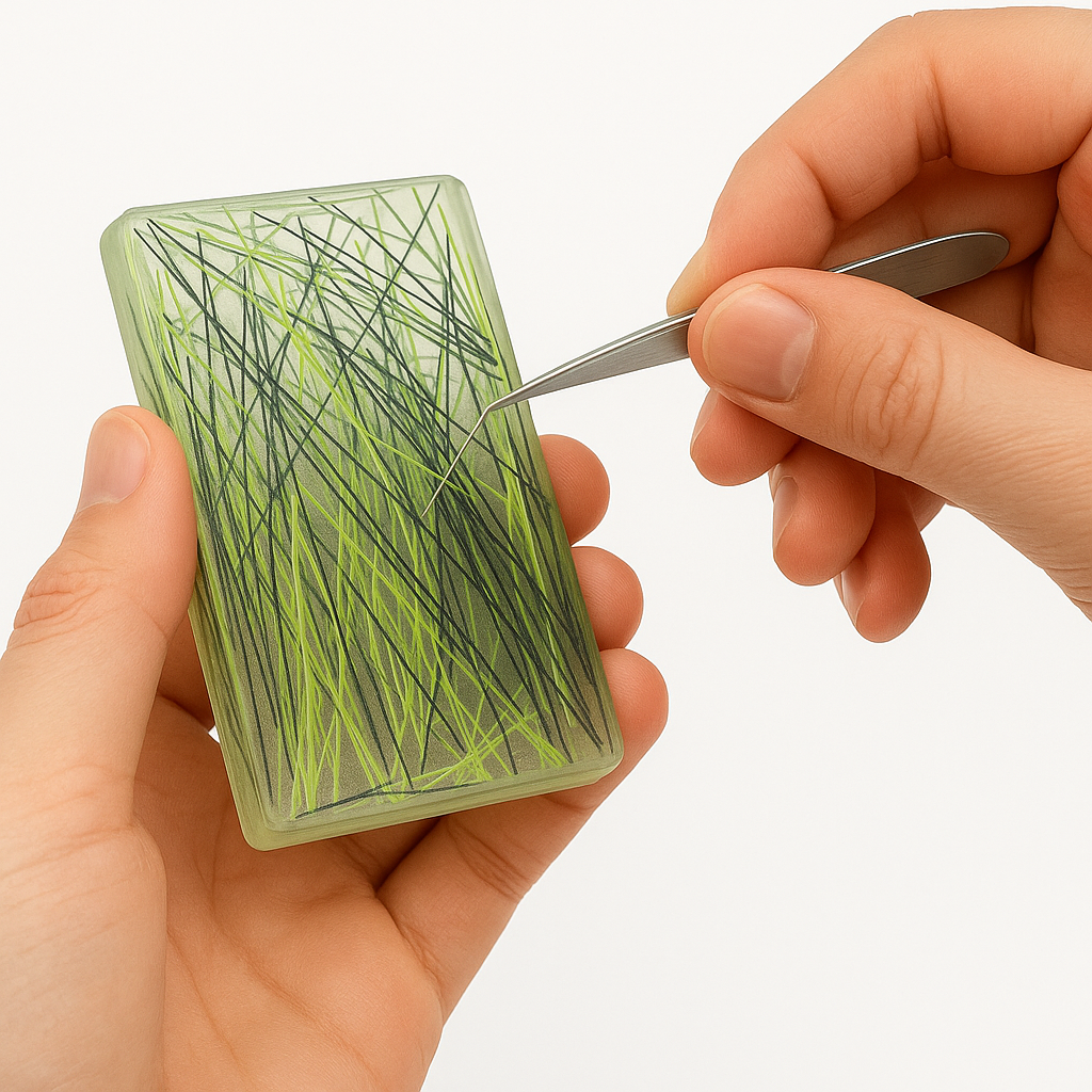 Erlebe das unglaublich befriedigende Gefühl 🤤, jedes einzelne Kunststoffhaar mit der Pinzette herauszuziehen – ganz ohne Schmerzen, ganz ohne Risiko.